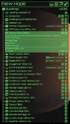 Įsikurkite Marse šiame unikaliame žaidimo ir mokslinio modeliavimo derinyje. Vadovaukite 10 naujakurių grupei, pasirinkite nusileidimo vietą ir plėtokite savo misiją. Nuo vieno modulio išauginkite klestinčią gyvenvietę su šimtais specializuotų pastatų ir gausėjančiais gyventojais.