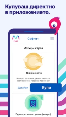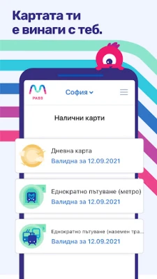 MPass patirtis yra intuityvi ir greita. Vos keliais paspaudimais galite registruotis, pasirinkti ir įsigyti norimą kelionės bilietą ar kortelę. Jūsų įsigytas bilietas akimirksniu tampa aktyviu ir paruoštu naudojimui tiesiai jūsų telefono ekrane, leidžiantis akimirksniu pradėti kelionę. Šiuo metu MPass teikia paslaugas patogiam keliavimui Sofijos ir Plovdivo viešajame transporte, tačiau mes nuolat plečiamės. Netrukus tikėkitės MPass paslaugų ir kituose miestuose, praplečiant skaitmeninio keliavimo galimybes visoje šalyje.
